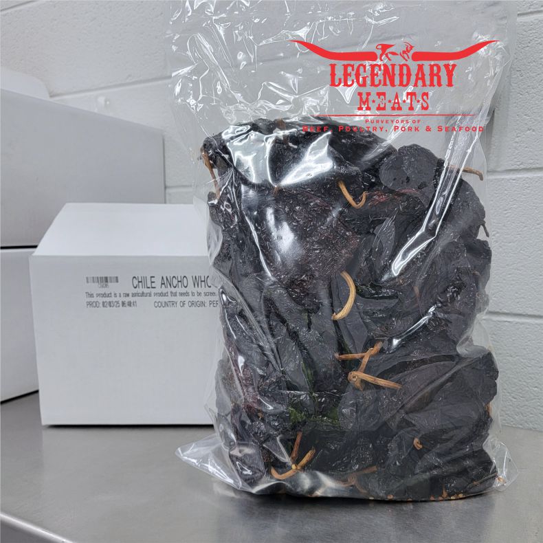 Add rich, smoky depth to your dishes with Chile Ancho 1/5LB from Legendary Meats. These dried poblano peppers are carefully selected for their bold flavor and mild heat, making them a staple for authentic Mexican cuisine.